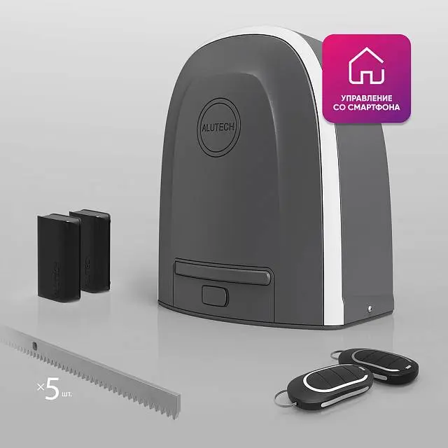 Умный привод для откатных ворот ALUTECH Roteo RTO-500MKIT-Sm + беспроводные фотоэлементы LM-LB + рейка ROA8 (5 шт.)