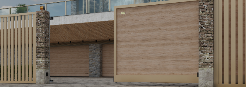 Бесшумные в работе ворота для загородных участков, оформленных в современном стиле.